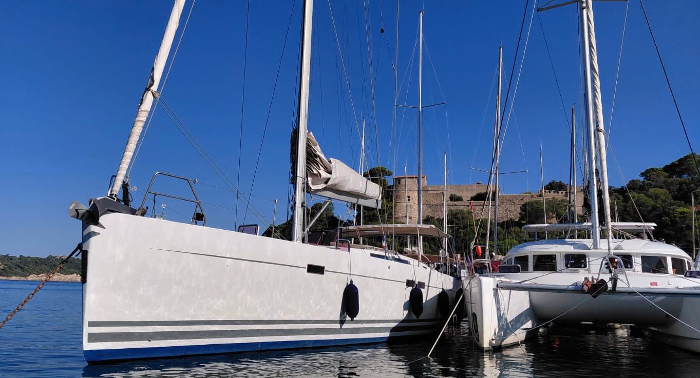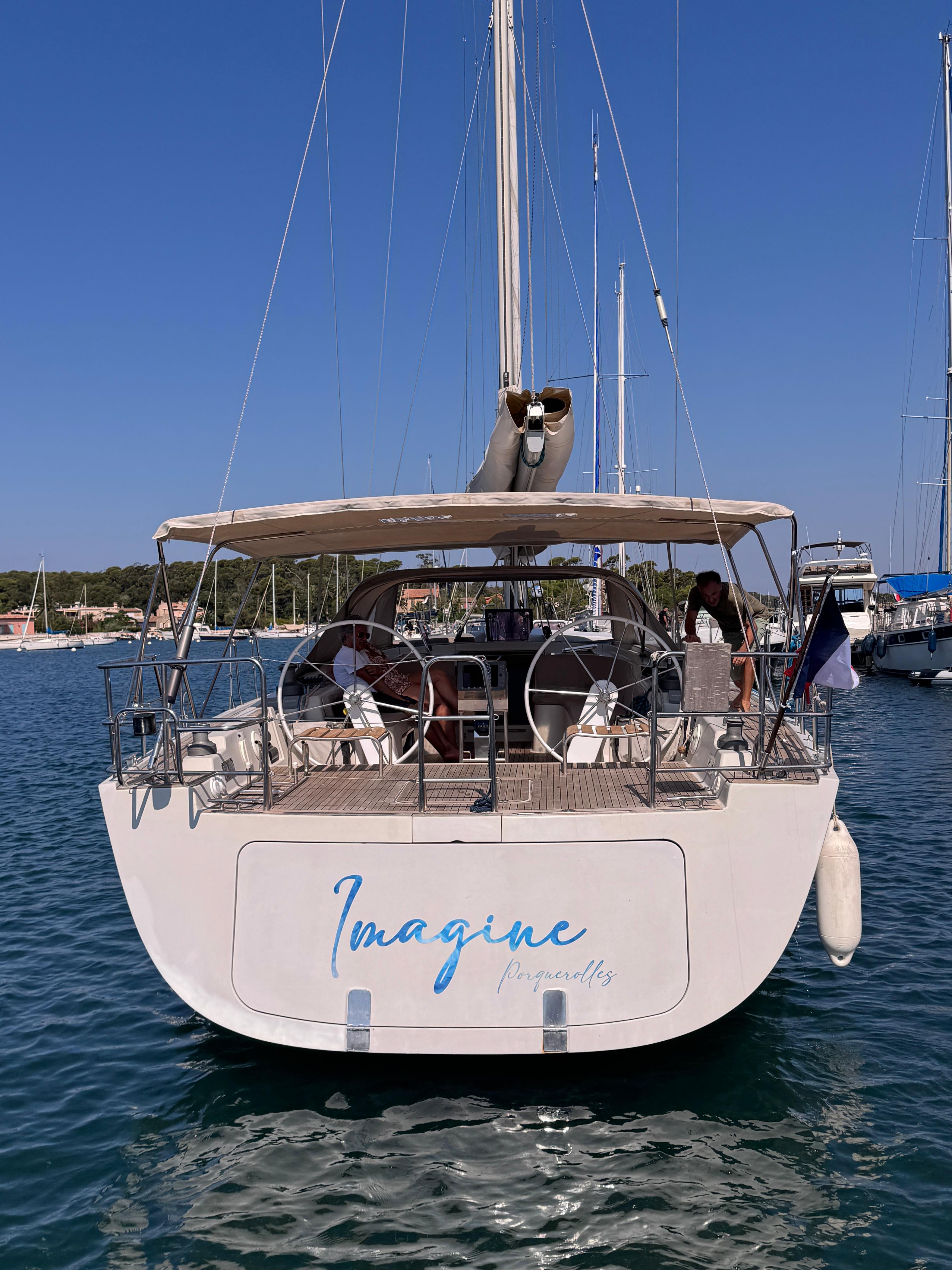 Naviguez en toute liberté à bord du voilier Imagine (Hanse 540e - 16,5 m - climatisé). Idéal pour explorer les criques sauvages des Îles d'Or et leurs eaux cristallines.