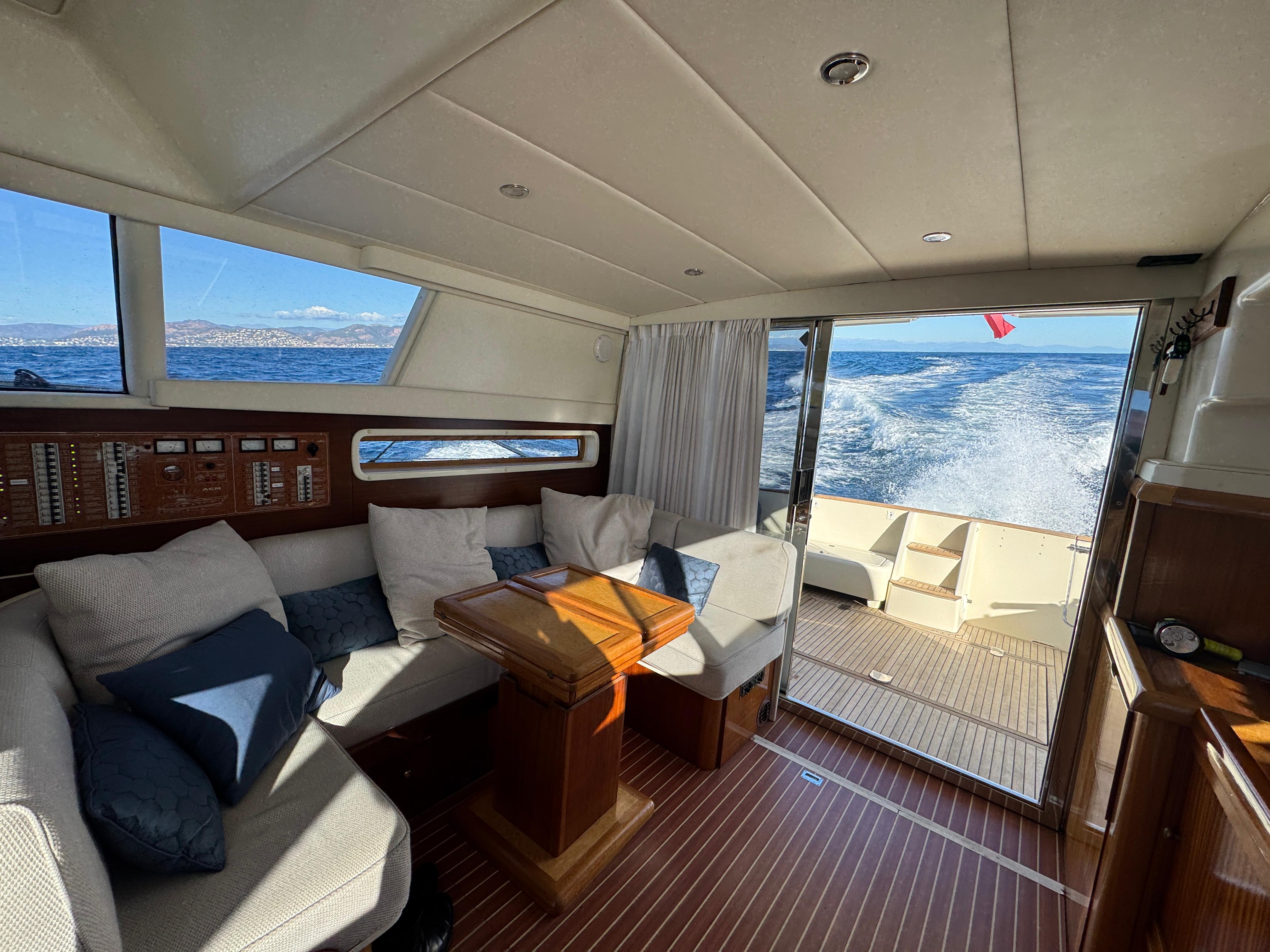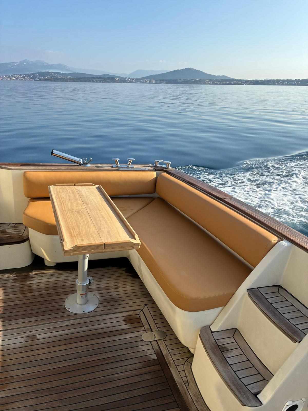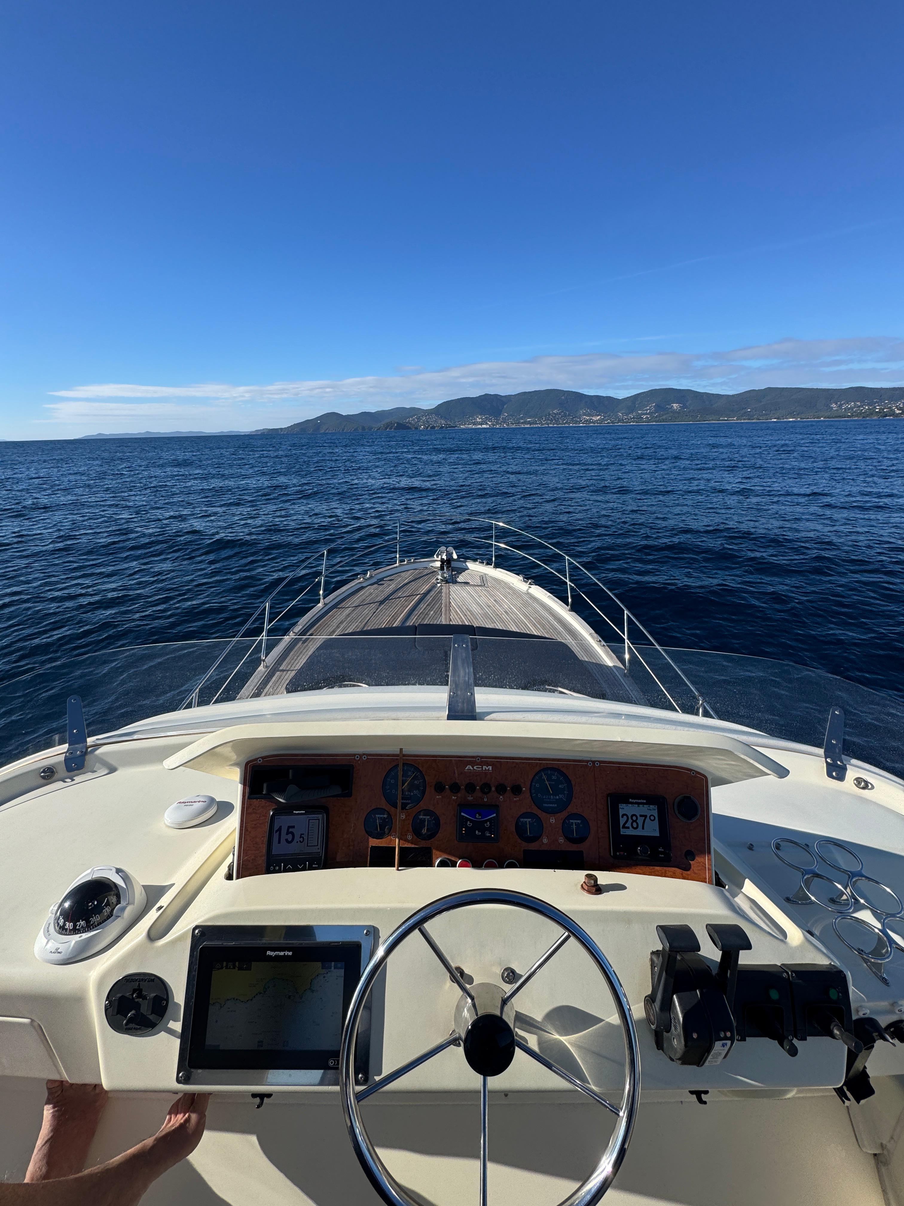 Explorez la côte varoise à bord du yacht Lascia Corra (ACM 43 - 13,5 m - climatisé). Confort premium et vitesse pour rejoindre rapidement les plus beaux mouillages.